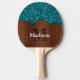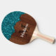 Aqua blue sparkles rustic brown wood Monogram Ping Pong Paddle