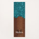 Aqua blue sparkles rustic brown wood Monogram Yoga Mat