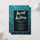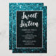Aqua blue sparkles Sweet 16 elegant script Invitation
