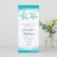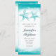Elegant white beach wedding programs with turquoise bright lovely starfish couple.