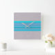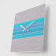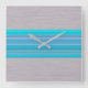 Aqua Blue Striped Pattern on Silver Gray Square Wall Clock