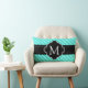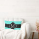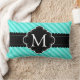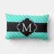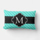 Aqua Blue Stripes Pattern Black Custom Monogram Lumbar Cushion