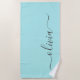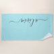 Aqua Blue Teal Modern Script Girly Monogram Name Beach Towel