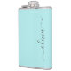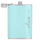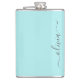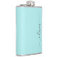 Aqua Blue Teal Modern Script Girly Monogram Name Hip Flask