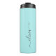 Aqua Blue Teal Modern Script Girly Monogram Name Thermal Tumbler