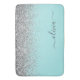 Aqua Blue Teal Silver Glitter Monogram Bath Mat