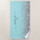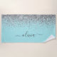 Aqua Blue Teal Silver Glitter Monogram Beach Towel