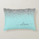 Aqua Blue Teal Silver Glitter Monogram Decorative Cushion