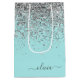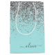Aqua Blue Teal Silver Glitter Monogram Medium Gift Bag