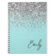 Aqua Blue Teal Silver Glitter Monogram Notebook