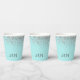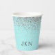 Aqua Blue Teal Silver Glitter Monogram Paper Cups