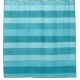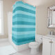 A stylish and modern shower curtain with a stripes pattern in shades of aqua blue, teal, turquoise, and mint.