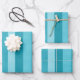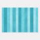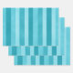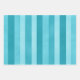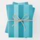 Modern striped wrapping paper sheets with a aqua, turquoise, and blue stripes pattern with a textured look.