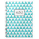 A chic and stylish spiral notebook with a modern aqua blue and white geometric triangle pattern. Personalise the front with any name.
