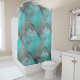 Aqua blue turquoise and shades of grey and tan in a diagonal block pattern