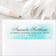 Elegant return address labels with your name in a romantic calligraphy script font with the address below on an aqua blue watercolor background