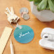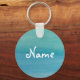 Aqua blue watercolor keychain with custom name. Personalizable name. Cute wedding favour for beach destination wedding.