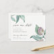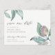AQUA BLUE WATERCOLOUR FOLIAGE OLIVE SAVE THE DATE ANNOUNCEMENT POSTCARD
