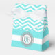 Aqua blue, white chevron zigzag pattern monogram wedding favour box featuring a chevron or zigzag pattern. Along the bottom part there is a turquoise band and your initials in a grey round frame with dots on a white stripe. This monogrammed trendy and cute girly favour box is perfect for other special occasions too such as bridal showers, birthday parties, baby showers etc.
