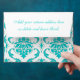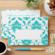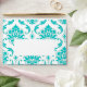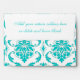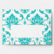 Aqua Blue White Damask Pattern Printed A7 Envelope Template. Aqua White Damask graphic design pattern makes this an elegant envelope for your special occasion. Envelope has a blank section on the front for your mailing address. Fully customisable. Personalise with your text, graphics, monogram and or photograph on the front, back and inside and outside flap of the envelope. Great for special occasions like weddings, birth announcements, graduations and everyday elegance in personal handwritten letters.