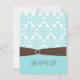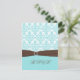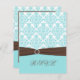 Aqua Blue, White Damask with Brown FAUX Ribbon RSVP Card