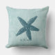 Aqua Blue White Ocean Shore Starfish Cushion