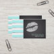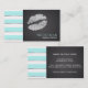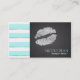 Aqua Blue White Stripes Faux Silver Shine Lips Business Card