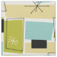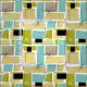 This fabulous mid century modern fabric is great if you want a bold colourful sewing project. This design features aqua blue, avocado green, yellow, and tan abstract rectangles, along with highlights of black and white starbursts.
