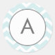 Aqua Blue Zig Zag Chevron Pattern Monogram Classic Round Sticker