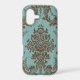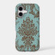 Aqua brown damask Case-Mate iPhone case