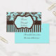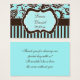 This aqua blue, white, and brown stripes with damask wedding favour tag matches the wedding invitation shown below.