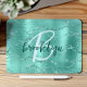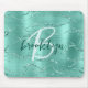Aqua Brushed Metal Glitter Script Monogram Mouse Mat