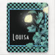 Dramatic and elegant design features aqua and black checkboard background, luminescent white rose floral bouquet and customisable name.