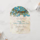 Coral Orange & Hawaiian Aqua Turquoise Blue Cherry Blossom Weddings On Distressed Damask Tea Stained Wedding Invitations
