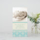 Baby Shower thank you photo cards in elegant and modern turquoise blue and cream off white with delicate flourishes vintage pattern. A perfect way to thank friends and family for baby shower gifts and to share your baby photos. Available in many matching product for your shower.