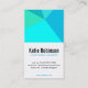 A modern minimalist design featuring a graphic geometric design on the top half consisting of five coloured triangles in different shades of aqua, blue and mint green. Underneath, there is space for your details in a modern sans serif font in bright blue and black on a white background. On the reverse, the geometric design is repeated.