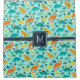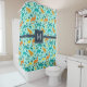 Personalize this cute dinosaur themed shower curtain with your child’s single initial monogram in white lettering for a cool custom touch! Created especially for dino-loving kids, this colorful design features orange, yellow, and mint green dinosaur illustrations on a vibrant aqua background.