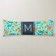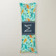 Personalise this cute dinosaur themed body pillow with your child’s single initial monogram in white lettering for a cool custom touch! Created especially for dino-loving kids, this colourful design features orange, yellow, and mint green dinosaur illustrations on a vibrant aqua background.