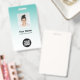 Easily personalise this Custom Corporate Employee Security Id Name Badge with Photo, Scan Bar Code or Qr code and business logo featuring a white ombre gradient on background colour. A simple business design in light pastel turquoise aquamarine light blue and white colours with an ombrè overlay, fully customisable in any colour in front and back sizes, sans-serif basic and modern fonts and a professional, elegant and clear look. The badges are avaiable with lanyard, metal clip or with retractable. No minimum order.
