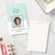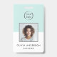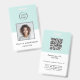 A professional company logo ID Badge with employee photo, name and title on the front along with your company logo. A cool aqua robin egg blue and white colour scheme add a distinctive look to the badge. The back of the badge has a template for your company website QR code and additional company information as desired. All of the text may be edited as you prefer.