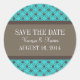 Trendy and chic Fancy Lattice Save the Date Stickers featuring a stylish circle and diamond studded pattern over a vibrant turquoise background with a broad two-toned brown border. These elegant save the date stickers are perfect for announcing your modern wedding. Easy to customise, simply add your wedding details in the text fields provided. Click "Customise It" to find more personalisation options.