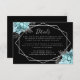 Aqua Floral Silver Black Wedding Details Enclosure Card