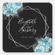 Aqua Floral Silver Geometric Black Wedding Square Sticker