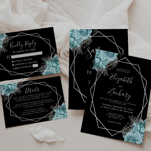 Aqua Floral Silver Geometric Black Wedding SuiteDesigned by Akhates Designs