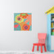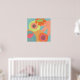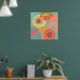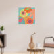 Flowers on aqua in orange, yellow and tangerine. This pop modern poster is good for residential and commercial spaces.