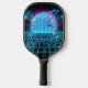 Aqua Glitch Matrix Neon Blue Futuristic Pickleball Paddle
