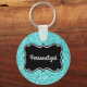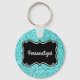 Aqua Glitter Black and White Personalised Frame Key Ring