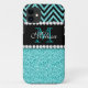 AQUA GLITTER BLACK CHEVRON MONOGRAM Case-Mate iPhone CASE