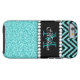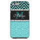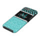 AQUA GLITTER BLACK CHEVRON MONOGRAM Case-Mate iPhone CASE