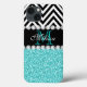 AQUA GLITTER BLACK CHEVRON MONOGRAMMED Case-Mate iPhone CASE